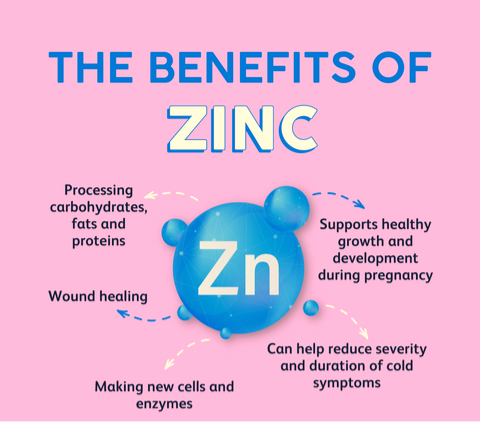 الزنك ضروري لانقسام الخلايا ويساهم في النمو الطبيعي أثناء الحمل والطفولة والمراهقة. كما يدعم الزنك الخصوبة والتكاثر، مما يجعله عنصرًا أساسيًا في المراحل الحيوية من الحياة.