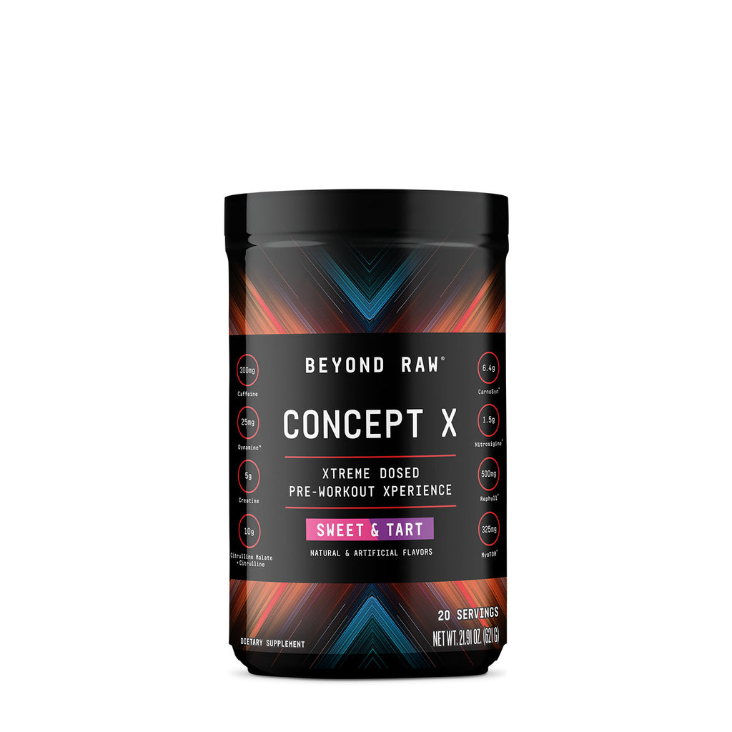 GNC BEYOND RAW® Concept X Pre-Workout is an advanced supplement designed to push the limits of your energy, strength, endurance, and focus during workouts. It contains 300 mg of caffeine, including 50 mg of Xtenergy™ P2, for sustained energy. Additionally, it includes 6.4 g of CarnoSyn® beta-alanine to reduce lactic acid buildup, 5 g of creatine monohydrate to enhance strength, and 325 mg of MyoTOR® to support muscle growth.