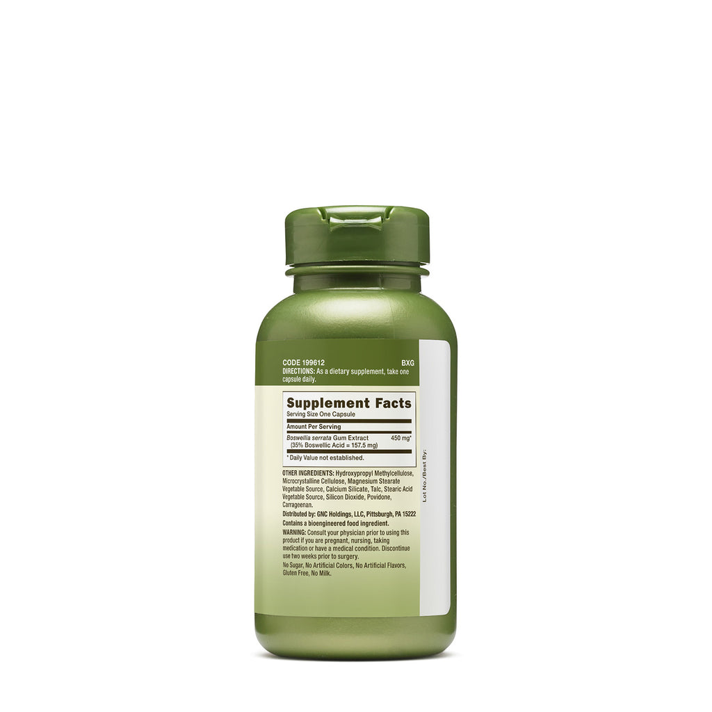 GNC Herbal Plus® Boswellia Extract 450 mg is an herbal supplement designed to support joint health. Boswellia, also known as Indian frankincense, is traditionally used in Ayurvedic medicine to support overall health.