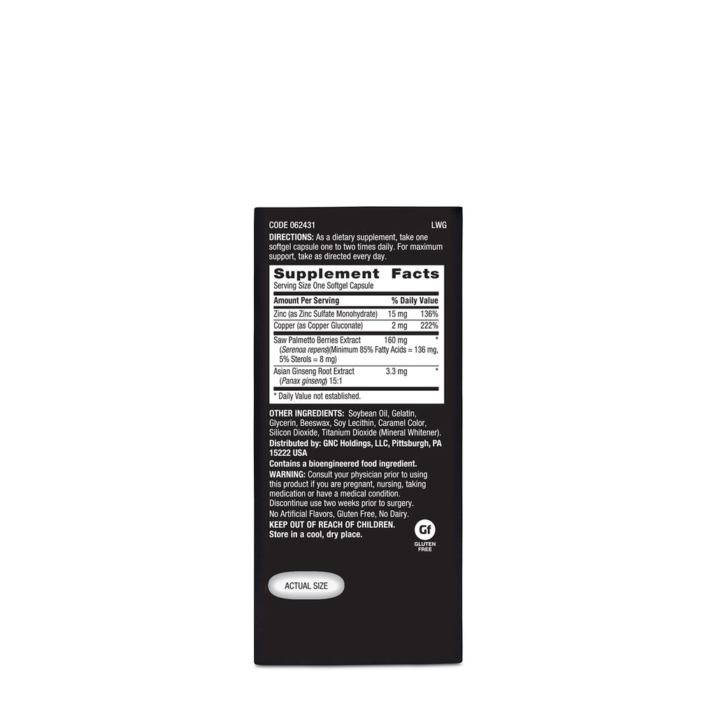 GNC Men's Ultra Saw Palmetto Formula provides specialized prostate health support with a powerful blend of saw palmetto, zinc, and lycopene. It helps improve urinary flow and maintain overall urinary tract health.