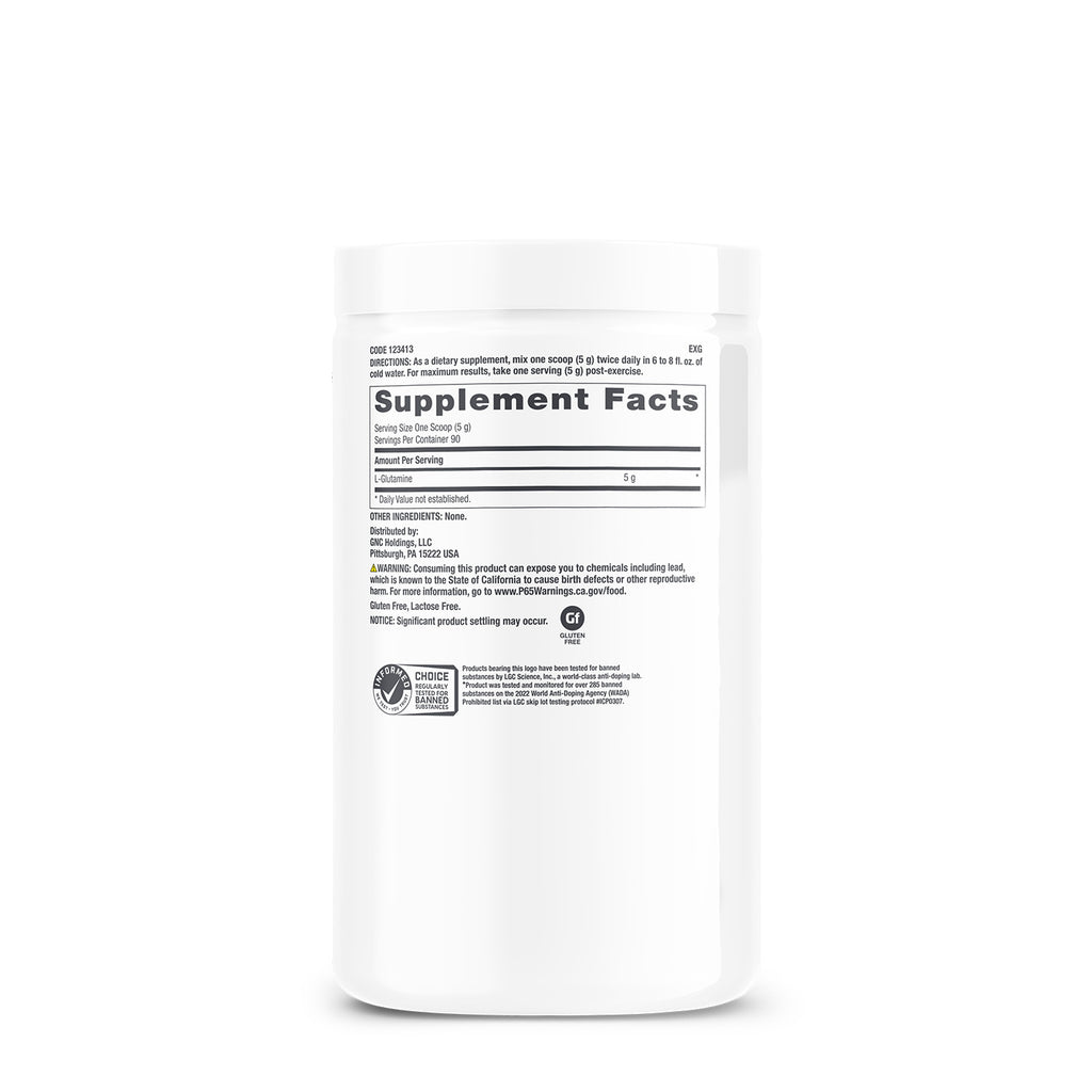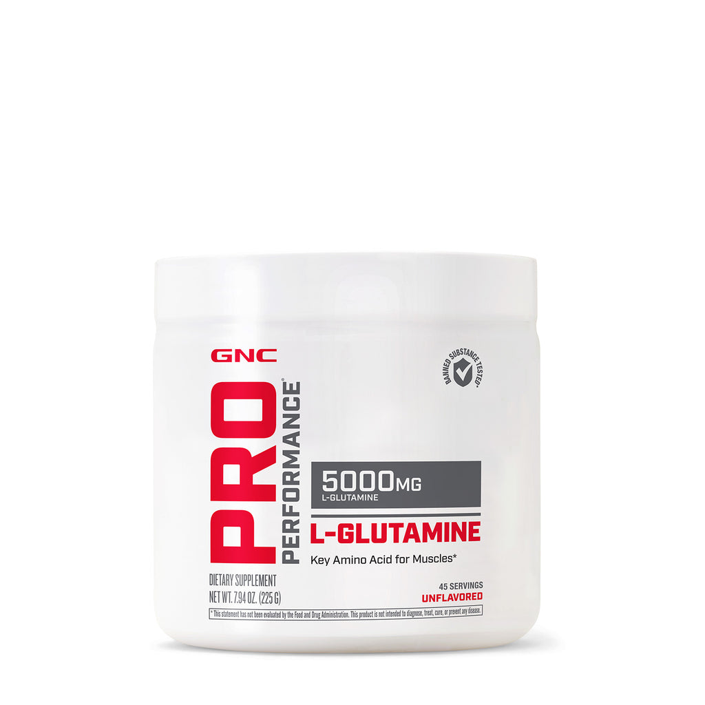 GNC Pro Performance® L-Glutamine is a dietary supplement providing 5000 mg of L-Glutamine per serving. L-Glutamine is an amino acid that plays a crucial role in supporting muscles, enhancing post-exercise recovery, and promoting immune health.