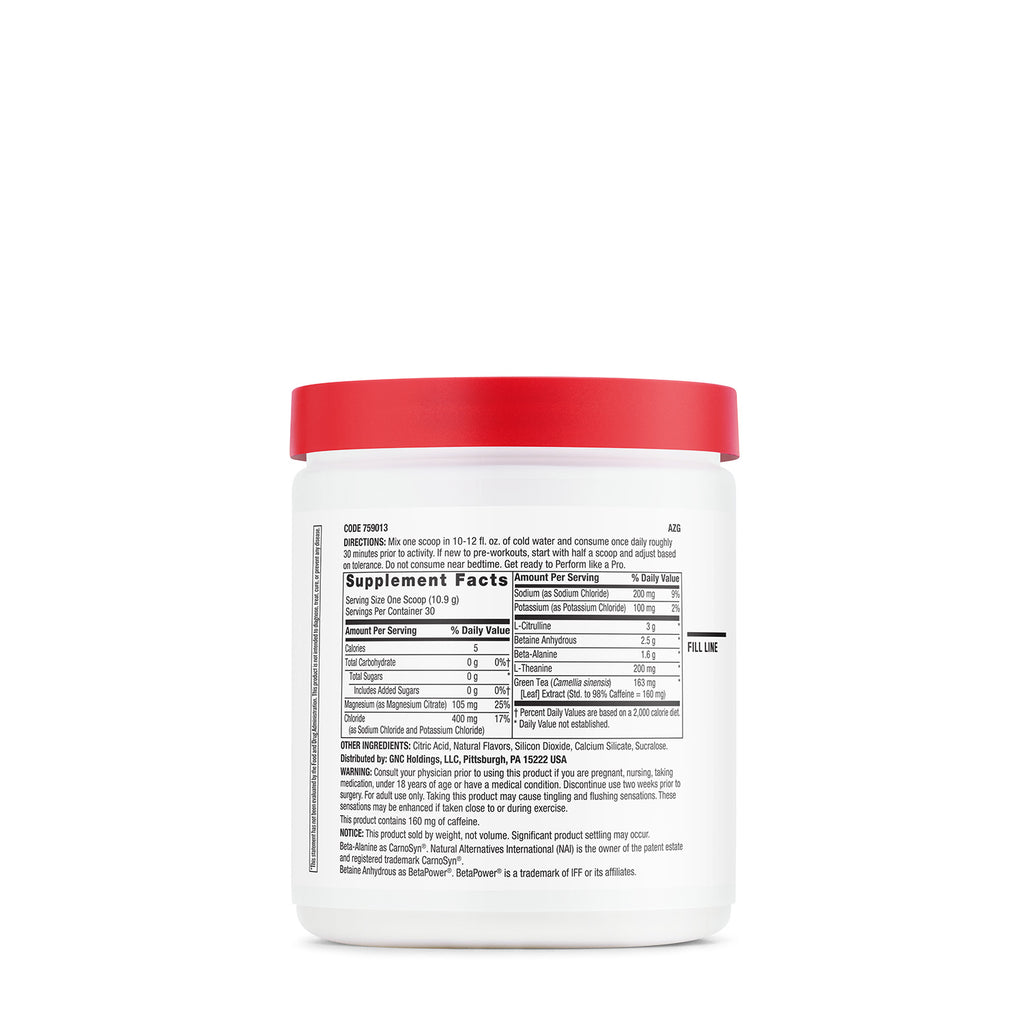 GNC Pro Performance® is a supplement designed to enhance athletic performance by supporting energy, endurance, hydration, and overall performance. This supplement contains carefully selected ingredients to provide a powerful pre-workout boost.
