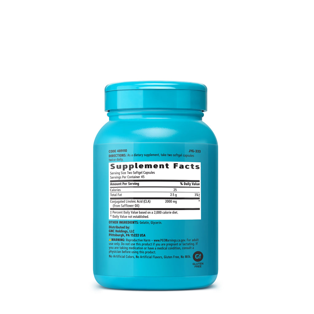 Contains 2000 mg of Conjugated Linoleic Acid (CLA) sourced from safflower oil