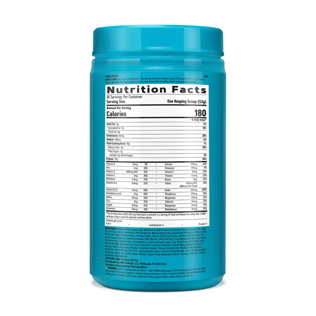 As a dietary supplement, mix one scoop (52 grams) with 8-10 fl oz of cold water. Consume this shake as a replacement for one or two meals daily as part of a balanced diet and exercise program.