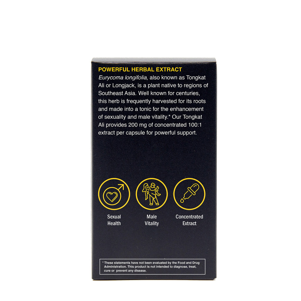 - 200 mg of Tongkat Ali (Eurycoma longifolia) extract with a 100:1 concentration.