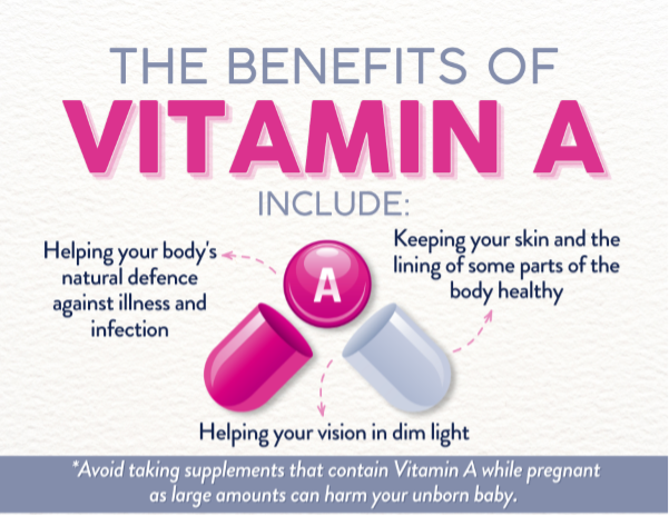 تناول جرعات زائدة من فيتامين أ قد يكون ضارًا. الجرعات الموصى بها يوميًا هي:
